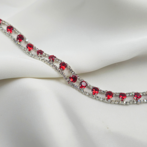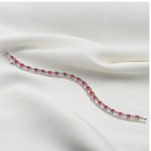 Premium Red Stones Parallel Chain Silver Plated Tennis Bracelet