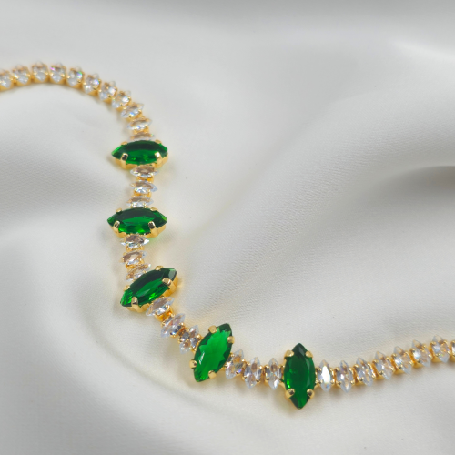 Green Big Stones Cubic Zircon Gold Plated Tennis Bracelet