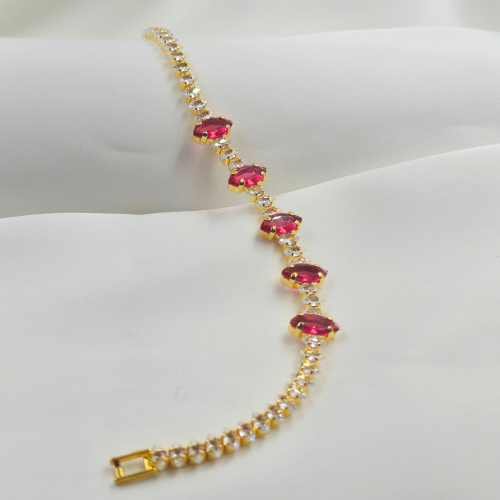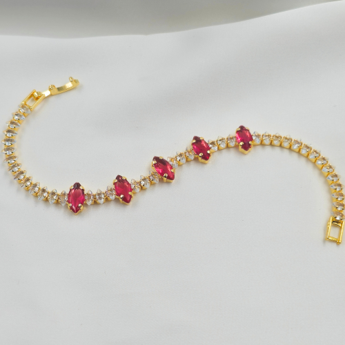 Red Big Stones Cubic Zircon Gold Plated Tennis Bracelet