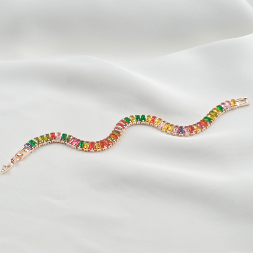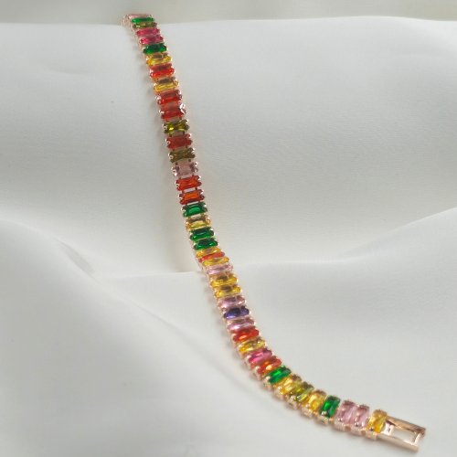 Multicolour Cubic Zircon Gold Plated Tennis Bracelet