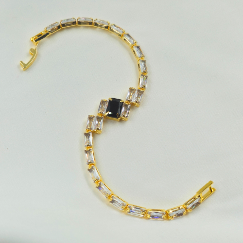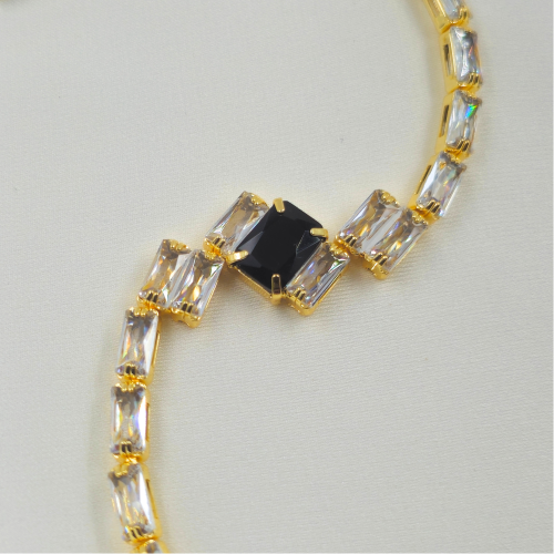 Black Stone Cubic Zircon Gold Plated Tennis Bracelet