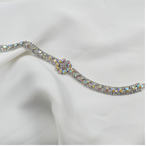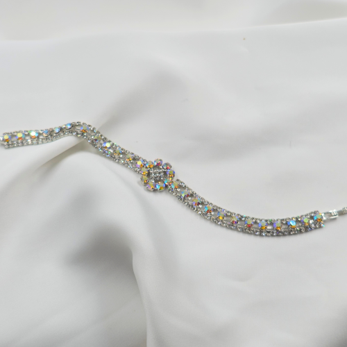 Circular Stone Studed Silver Chain Tennis Bracelet