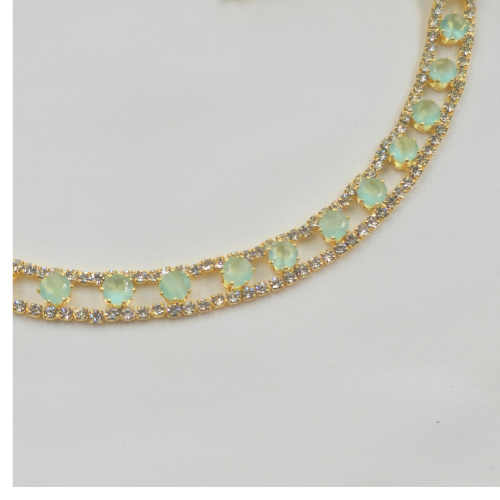 Premium Light Green Stones Parallel Chain Gold Plated Tennis Bracelet